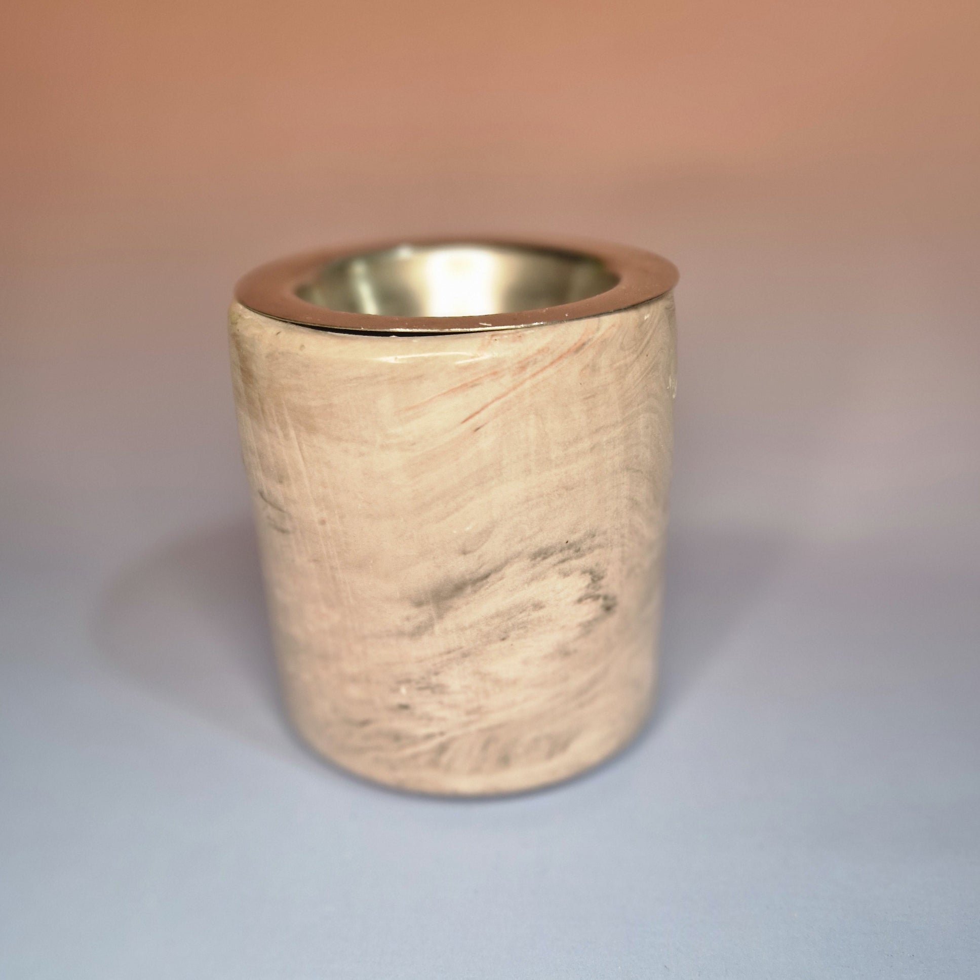 O Queimador Essencial Redondo é uma peça artesanal minimalista em Jesmonite, criada para aromatizar a casa com estilo e simplicidade. O seu formato compacto encaixa em qualquer espaço, enquanto a taça metálica superior permite aquecer óleos essenciais ou derreter velas perfumadas de forma segura.